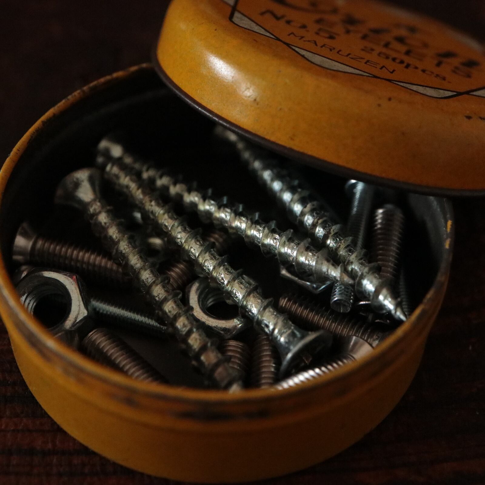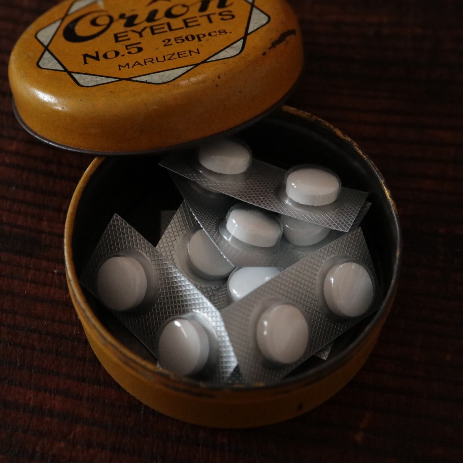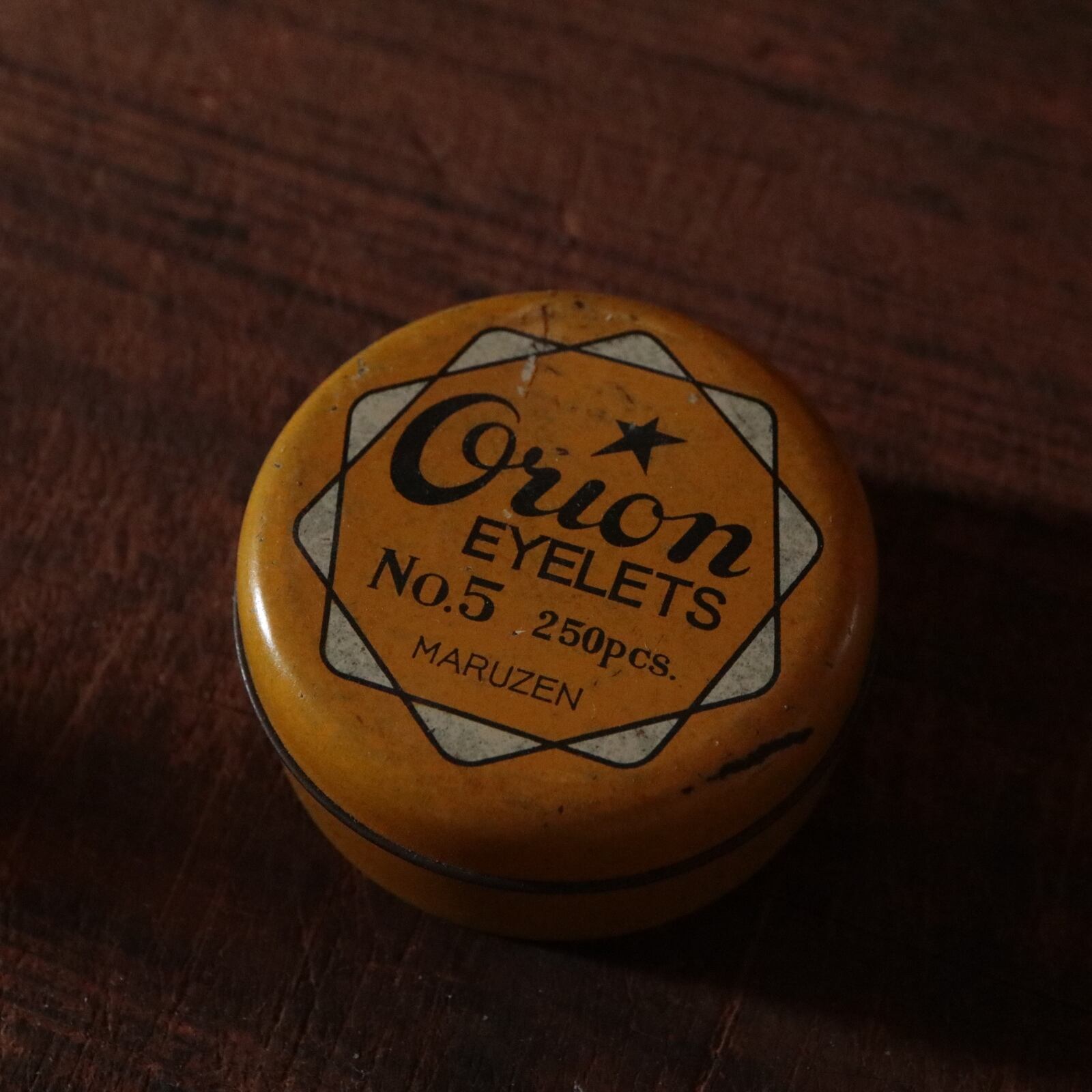 ハトメ鋲の入っていた缶ケースです。